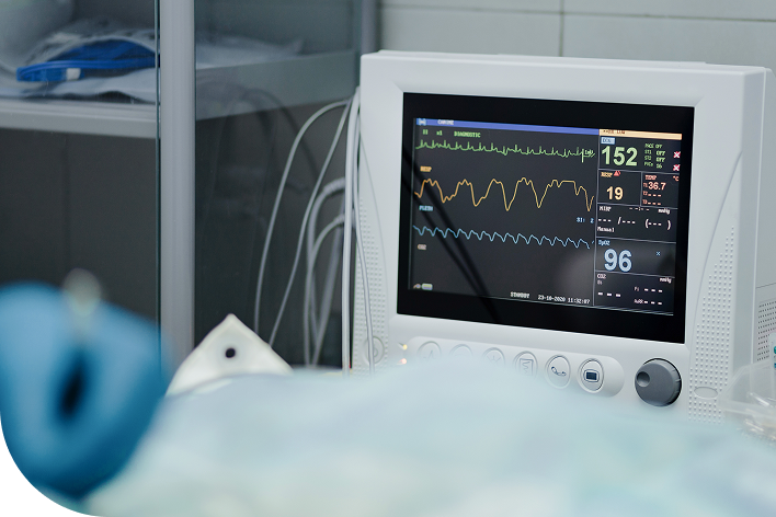 실시간으로 혈압, 심전도, 산소포화도, 맥박 등 환자 상태를 체크하고, 응급키트와 산소공급장치 등 이 구비되어 있어 더욱 안전한 치료가 가능합니다.