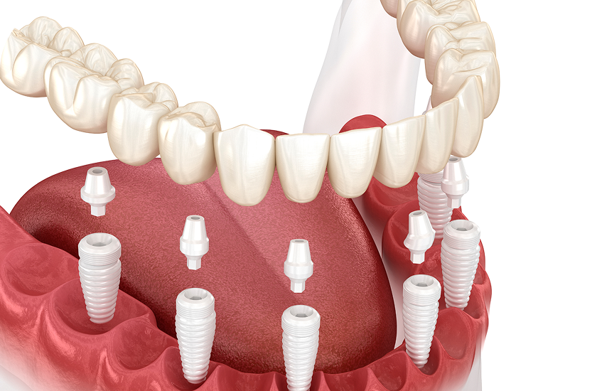 치아가 전혀 없거나, 1-2개만 남기고 모두 없을 경우, 전체 임플란트를 통해